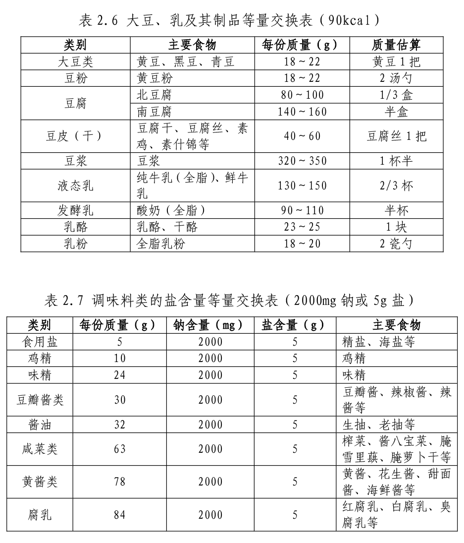 附:食物等量交換表:谷薯類、蔬菜類、水果類、肉類、堅果類、大豆類、乳及其制品類、調(diào)味料類的鹽含量