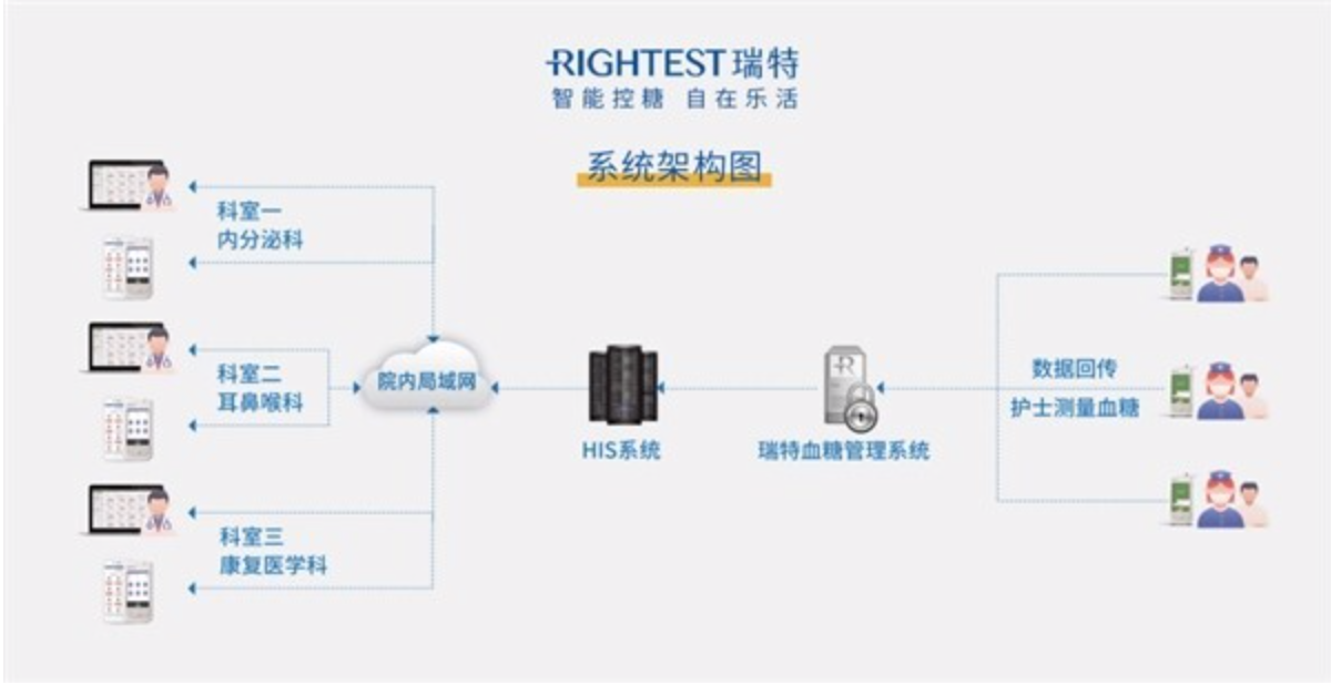 近年來(lái),醫(yī)院糖尿病住院患者呈逐年增加趨勢(shì),尤其是在非內(nèi)分泌科,但由于非內(nèi)分泌科醫(yī)護(hù)人員血糖管理能力參差不齊,信息化管理水平偏低,造成糖尿病患者血糖管理不佳。為了尋求以內(nèi)分泌科為主導(dǎo)的多學(xué)科協(xié)同合作,提高全院血糖管理水平,上述醫(yī)院于2021年7月引入瑞特全方位智能血糖管理系統(tǒng)并成立全院血糖管理中心,系統(tǒng)化布局全院32個(gè)科室,實(shí)現(xiàn)全院血糖信息化管理。