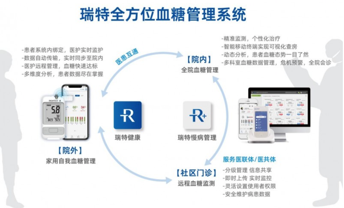 糖尿病高發(fā)促使血糖管理成為醫(yī)院及醫(yī)務(wù)人員必須重視的問(wèn)題。然而,在傳統(tǒng)糖尿病管理模式中,由于院內(nèi)血糖監(jiān)測(cè)管理數(shù)據(jù)準(zhǔn)確性差,個(gè)性化方案少,非內(nèi)分泌科高血糖頻發(fā),會(huì)診率低,全院缺乏專業(yè)規(guī)范的血糖管理;院外患者較多且自我血糖管理意識(shí)差,醫(yī)師一對(duì)多,管理難度增大,難以實(shí)現(xiàn)有效的追蹤管理,從而導(dǎo)致糖尿病患者的血糖管理現(xiàn)狀不容樂(lè)觀。糖尿病患者血糖控制不佳,可引發(fā)多種急慢性并發(fā)癥,增加致殘率和死亡率。